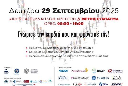 Το Athens Heart Festival 2025 αποτελεί τη σημαντικότερη κοινωνική δράση της Ελληνικής Καρδιολογικής Εταιρείας και διοργανώνεται για τρίτη συνεχόμενη χρονιά με αφορμή την Παγκόσμια Ημέρα Καρδιάς.