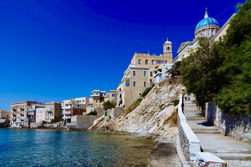 Το ραντεβού δίνεται όπως πάντα, έξω από το εμβληματικό Δημαρχιακό Μέγαρο, το οποίο αποτελεί έργο του Ερνέστου Τσίλερ, ξετυλίγοντας, έτσι, το νήμα της ιστορίας της πόλης. Οι άνθρωποι του νησιού έχουν κάθε δικαίωμα να υπερηφανεύονται για μια σειρά από πρωτιές, αφού εδώ ιδρύθηκαν το πρώτο δημόσιο νοσοκομείο, το πρώτο δημοτικό θέατρο και το πρώτο γυμνάσιο της Ελλάδας. Το μπασκετικό ταξίδι στην αρχόντισσα των Κυκλάδων, που θα ανακαλύψεις την πολύχρωμη νεοκλασική Ερμούπολη, την καθολική Άνω Σύρο, την πατρίδα του Μάρκου Βαμβακάρη, τα περίφημα Βαπόρια και τον Άγιο Νικόλαο, ξεκινάει και θα είναι όλοι εκεί, εσύ θα λείπεις;