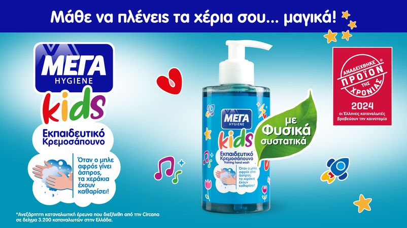 Με ειδική μέριμνα για τα παιδιά, η ΜΕΓΑ αφουγκράστηκε την ανάγκη εκμάθησης της σωστής πρακτικής πλυσίματος χεριών στα παιδιά, απαντώντας σε μια από τις πιο βασικές ανησυχίες όλων των γονιών.