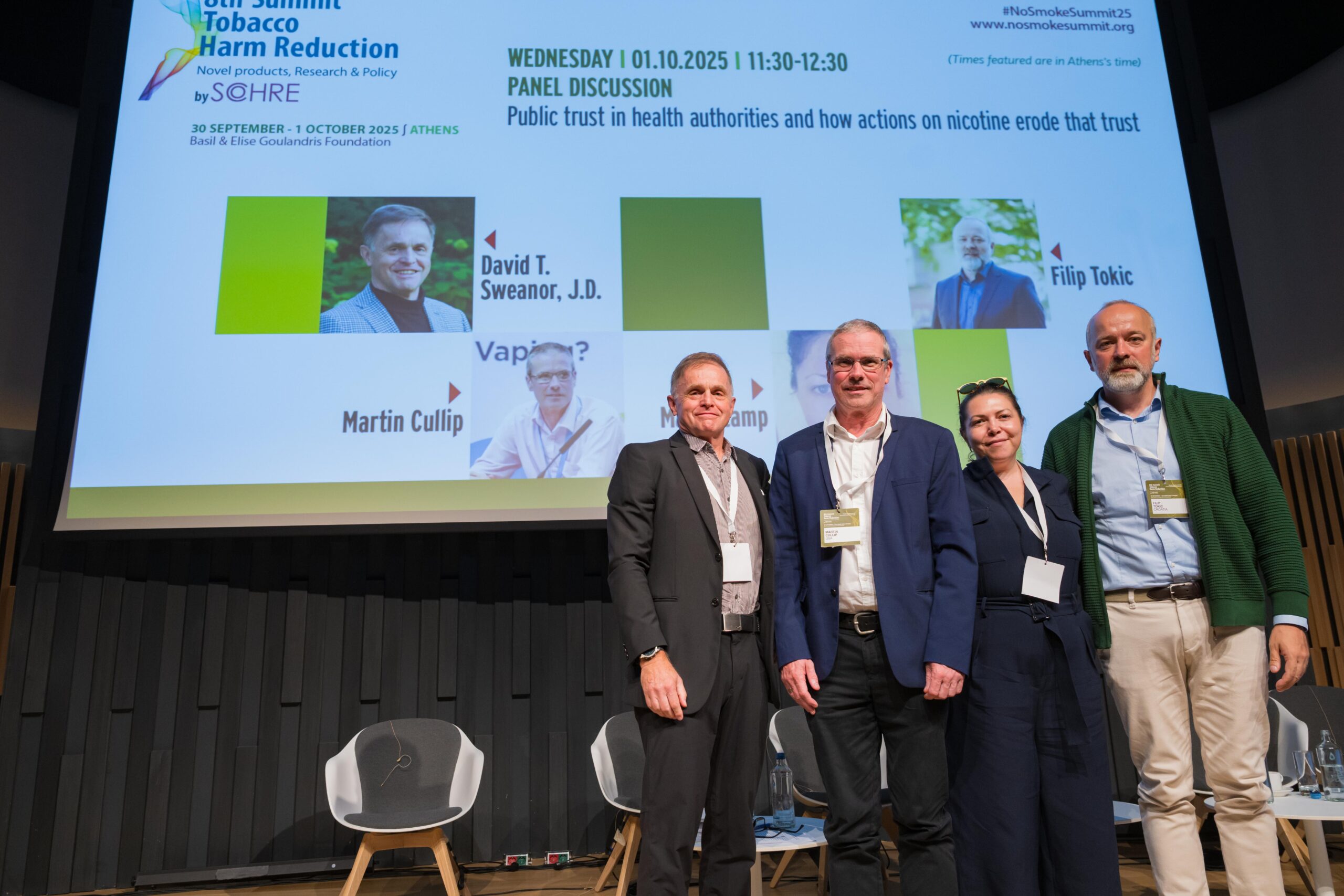 Ο David T. Sweanor, J.D., συντόνισε μια ιδιαίτερα ενδιαφέρουσα συζήτηση που εστίασε στη μείωση της εμπιστοσύνης του κοινού προς τις αρχές υγείας, με έμφαση στη νικοτίνη και τα προϊόντα καπνού. Όπως ανέφερε, παγκοσμίως η εμπιστοσύνη στις κυβερνήσεις ανέρχεται μόλις στο 52%, ενώ στις δυτικές φιλελεύθερες δημοκρατίες το ποσοστό αυτό είναι ακόμη χαμηλότερο. Αντίθετα, μια πρόσφατη παγκόσμια μελέτη κατέδειξε ότι η συνολική εμπιστοσύνη στην επιστήμη παραμένει υψηλή.