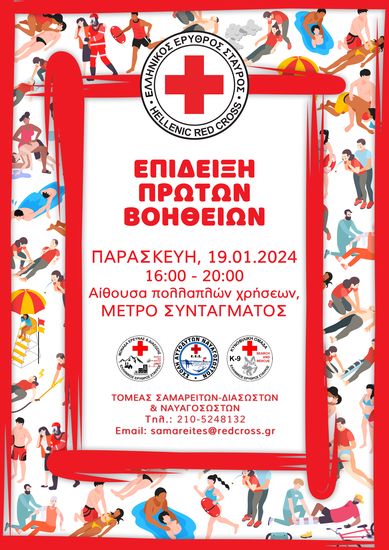 O Ελληνικός Ερυθρός Σταυρός, στο πλαίσιο ενημέρωσης και ευαισθητοποίησης του κοινού για τη σημασία ορθής γνώσης Πρώτων Βοηθειών, διοργανώνει, την Παρασκευή 19 Ιανουαρίου 2024 και ώρες 4-8 μ.μ., μεγάλη εκδήλωση στον χώρο πολλαπλών χρήσεων του Μετρό Συντάγματος, με θέμα «Μάθε Πρώτες Βοήθειες, Σώσε μια ζωή».