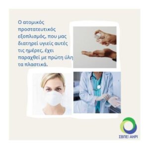 Εν μέσω πανδημίας ο εξοπλισμός που προσέφερε προστασία και ασφάλεια στο ιατρονοσηλευτικό προσωπικό, που έδωσε και δίνει την μάχη στα νοσοκομεία, είχε σαν βασικό υλικό το πλαστικό, (γάντια, μάσκες, στολές, προσωπίδες, γυαλιά). Επίσης το 3D printing το οποίο αξιοποιήθηκε για την ταχύτατη παραγωγή βαλβίδων αναπνευστήρων, αλλά και άλλων εξαρτημάτων, είχε ως βασική πρώτη ύλη το πλαστικό.