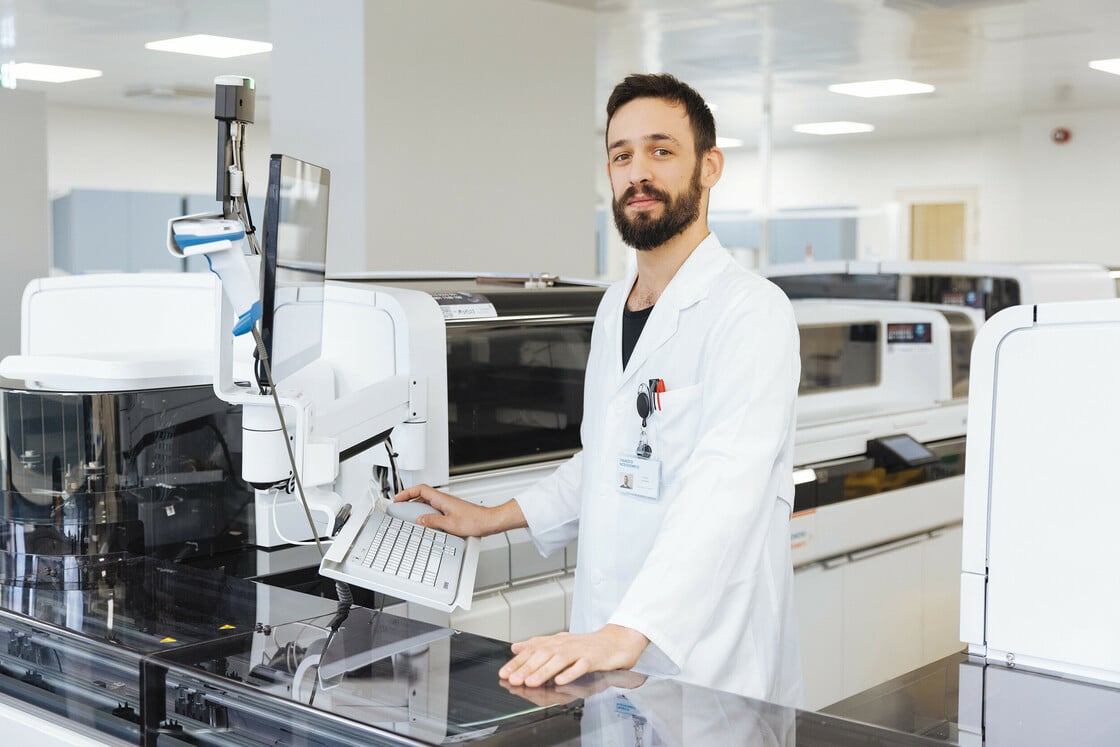 Η ξενάγηση ξεκινά από το βιοπαθολογικό εργαστήριο. Πρόκειται για έναν χώρο σπάνια ορατό στους επισκέπτες, αλλά κρίσιμο για τη λειτουργία κάθε νοσοκομείου. Η αναπληρώτρια διευθύντρια Δέσποινα Τάση-Παπαθέου και ο χημικός Ιωάννης Ντάσης εξηγούν ότι η ροή δεδομένων είναι πλήρως αυτοματοποιημένη και εναρμονισμένη με διεθνή πρότυπα. Κάθε δείγμα κωδικοποιείται, ταξινομείται και αποστέλλεται ψηφιακά στα τμήματα μέσα σε ελάχιστο χρόνο, αλλάζοντας ριζικά τον τρόπο λήψης αποφάσεων.