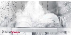 Όσον αφορά στα οικιακά σκεύη, τα πλυντήρια πιάτων LG QuadWash ενσωματώνουν αντίστοιχα την τεχνολογία TrueSteam™, χάρη στην οποία αφαιρείται εξίσου το 99,9% των οικιακών βακτηρίων που βρίσκονται στα πιάτα με τη χρήση ατμού στους 100℃. Ο ατμός TrueSteam™ που δημιουργείται από ζεστό νερό απλώνεται σε όλη την επιφάνεια του σκεύους και κάνει τα πιάτα αστραφτερά, ενώ τα σωματίδια ατμού υψηλής θερμοκρασίας βοηθούν επίσης στη μείωση των κηλίδων από το νερό έως και 30%.Ταυτόχρονα, χάρη στους βραχίονες ψεκασμού πολλαπλής κίνησης και τους ψεκαστήρες υψηλής πίεσης, το QuadWash™ εξασφαλίζει μέγιστο καθαρισμό με ένα μόνο πέρασμα. Οι τέσσερις περιστρεφόμενοι βραχίονες πολλαπλών κατευθύνσεων εκτοξεύουν νερό σε διάφορες γωνίες για να φτάσουν σε όλη την επιφάνεια του πιάτου, επιτυγχάνοντας μεγαλύτερη απόδοση καθαρισμού για το κάθε πιάτο σε όλες τις σχάρες. Αξιοσημείωτο είναι επίσης και το γεγονός ότι η θερμοκρασία του θαλάμου φτάνει τους 80°C κατά τη διάρκεια του στεγνώματος, για τον απόλυτο υγιεινό καθαρισμό των πιάτων.