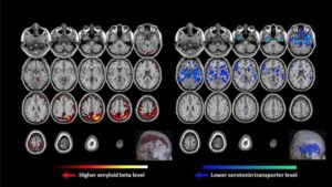 Σε μια σειρά δοκιμών που χρησιμοποιούν ραδιοιχνηθέτες – βραχείας δράσης ραδιενεργά μόρια που “ανάβουν” σε μια σάρωση PET – οι ερευνητές εξέτασαν και τα δύο σετ συμμετεχόντων για τις ποσότητες του Αβ και του μεταφορέα σεροτονίνης (5-HTT), μιας πρωτεΐνης που ρυθμίζει την ποσότητα σεροτονίνης στα νευρικά κύτταρα.