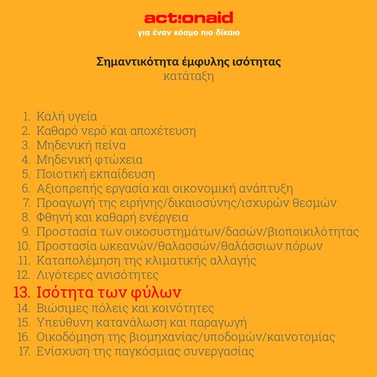 Τα ευρήματα αυτά ενισχύονται και από δεύτερη έρευνα**, χορηγίας επίσης της qed, που εστιάζει στους 17 Στόχους Βιώσιμης Ανάπτυξης: εκεί, ο στόχος που αναφέρεται στην ισότητα των φύλων βρίσκεται στην 5η από το τέλος θέση σπουδαιότητας, καθώς μόνο το 27% των ατόμων που απάντησαν θεωρεί πως η ισότητα πρέπει να είναι αναγκαία προτεραιότητα μιας κυβέρνησης.