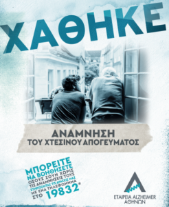 Στο πλαίσιο του Παγκόσμιου Μήνα Αλτσχάιμερ, η Εταιρεία Alzheimer Αθηνών διοργανώνει καμπάνια ευαισθητοποίησης με θέμα «xαμένες αναμνήσεις».