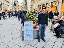 Ένας Κινέζος που ζει στη Φλωρεντία κατέβηκε στον δρόμο προκειμένου να διαμαρτυρηθεί ενάντια στην ξενοφοβία που έχει προκαλέσει ο νέος κορωνοϊός.