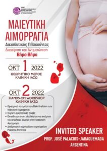 Το ΙΑΣΩ με το Τμήμα Αντιμετώπισης Επιπωματικού & Διεισδυτικού πλακούντα και σε συνεργασία με την Ελληνική Εταιρεία Μελέτης Μήτρας-Πλακούντα διοργανώνει το πρωτοποριακό Συνέδριο με θέμα: «Μαιευτική Αιμορραγία Διεισδυτικός Πλακούντας: Διαχείριση και Αντιμετώπιση Βήμα-Βήμα», το οποίο θα πραγματοποιηθεί το Σάββατο 1 Οκτωβρίου και την Κυριακή 2 Οκτωβρίου 2022, ώρα 09:00 π.μ., στην Αίθουσα Εκδηλώσεων του ΙΑΣΩ.