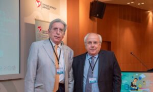 Από αριστερά: ο Καθηγητής Πνευμονολογίας Παναγιώτης Μπεχράκης και ο Καθηγητής Παιδιατρικής, Ανδρέας Φρετζάγιας.