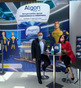 Σε ένα εντυπωσιακό περίπτερο βασισμένο στη νέα καμπάνια του Algon®, οι επισκέπτες είχαν την ευκαιρία να ενημερωθούν για το αναλγητικό και τις δράσεις του, καθώς και για τα νέα του τμήματος CHC (CοnsumerHealthCare) της Lavipharm. Η νέα καμπάνια του Algon® παρουσιάζει τους Algon® Masters, τους 3 υπερήρωες: την Ms. Caf, τον Μr. Ace και τον Mr. Par, που είναι εμπνευσμένοι από τις 3 δραστικές ουσίες του Algon®, όπου ο καθένας με τις δικές του δυνάμεις, δουλεύουν όλοι μαζί, πάντα ως ομάδα, ώστε να «περικυκλώσουν» και να αντιμετωπίσουν αποτελεσματικά τους «εχθρούς», τον πονοκέφαλο και την ημικρανία.