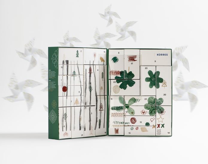 Η ΚORRES παρουσιάζει τον Χειμερινό Βοτανικό Κήπο της – 24 καλά κρυμμένα προϊόντα περιμένουν να ξεκινήσει η αντίστροφη μέτρηση. 24 κουτιά σε διαφορετικά σχήματα που δημιουργούν 4 διαφορετικές εικόνες. Φέτος, το KORRES Αdvent Calendar είναι εμπνευσμένο από την ελληνική παράδοση και περιλαμβάνει σχέδια από τη συλλογή του Μουσείου Μπενάκη, ενός από τα σημαντικότερα μουσεία του Ελληνικού Πολιτισμού.
