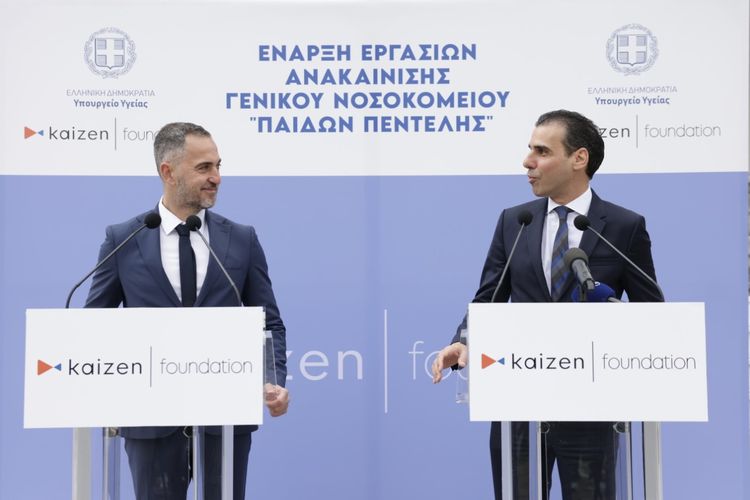 Η δράση του Κaizen Foundation ξεκινά από την Ελλάδα με την ανακαίνιση του Γενικού Νοσοκομείου Παίδων Πεντέλης. Το έργο, ύψους 3,8 εκατομμυρίων ευρώ, περιλαμβάνει την ανακαίνιση χειρουργείων που αποτελούν την καρδιά του νοσοκομείου, των κλινικών του πρώτου ορόφου και του ισογείου, την προσθήκη συστημάτων πυρασφάλειας, καθώς και την ανάπλαση του εξωτερικού του χώρου. Πρόκειται για τη μεγαλύτερης κλίμακας ανακαίνιση των εγκαταστάσεων του νοσοκομείου τα τελευταία 80 χρόνια, με την οποία θα αντιμετωπιστούν ουσιαστικά λειτουργικά προβλήματα που ταλαιπωρούσαν το προσωπικό και τους ασθενείς. Ταυτόχρονα, θα πραγματοποιηθούν αλλαγές που απαιτούνται από την εθνική νομοθεσία, όπως η μεταφορά του φαρμακείου στο ισόγειο και η απρόσκοπτη πρόσβαση των ΑμεΑ σε όλους τους χώρους του νοσοκομείου.